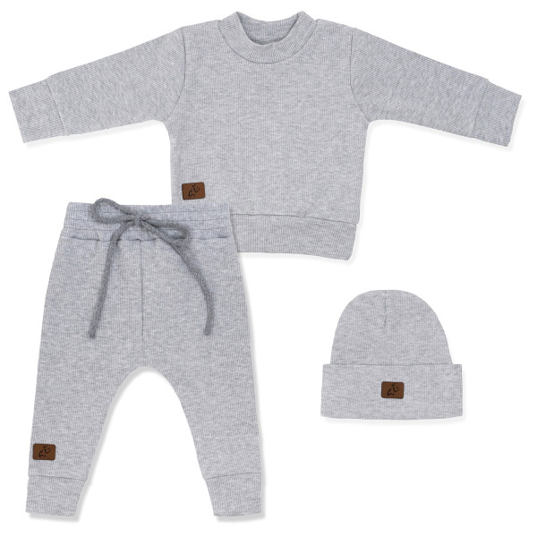 Ten trzyczęściowy zestaw klasycznych ubranek jest obowiązkowym elementem każdej dobrze skomponowanej wyprawki dla maluszka na chłodniejsze dni. Dzięki dołączonej do zestawu czapeczce maluch jest ciepło ubrany od stóp do głów.