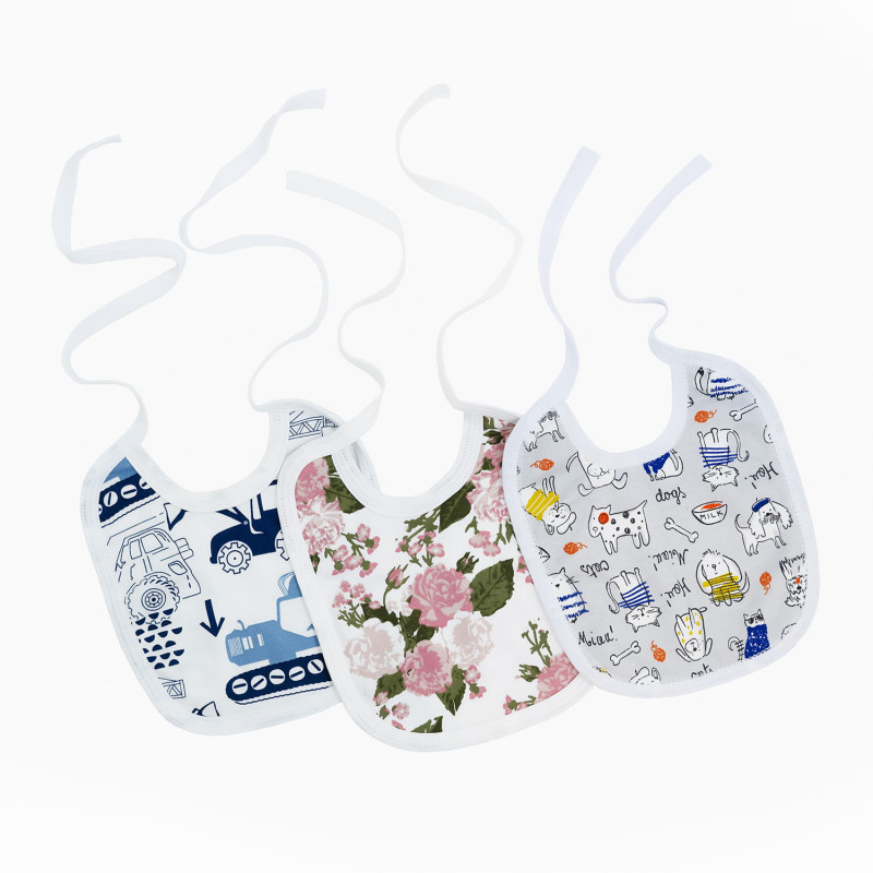 Komplet 3 śliniaczków z bawełny organicznej to niezbędny element wyprawki każdego maluszka. Zostały uszyte z dwóch warstw biobawełny, dzięki czemu dobrze zabezpieczają ubranko przed zabrudzeniem.